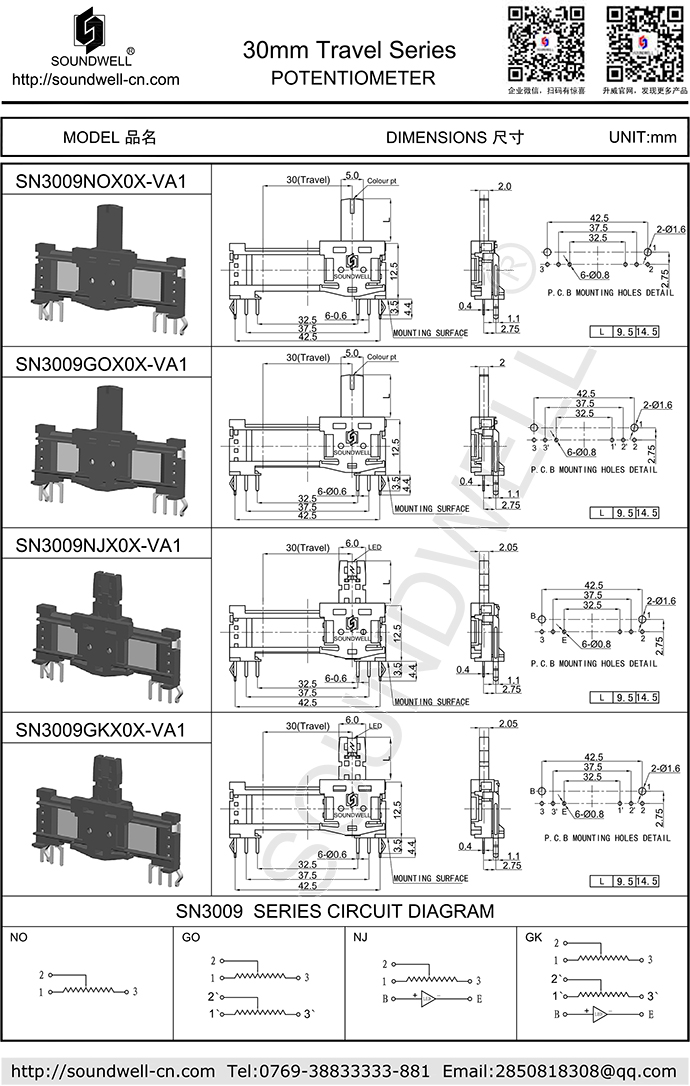 | Main Specifications: | Travel: 30mm Rated power: 0.2W Maximum operating voltage: AC 100V; Operating temperature: -10℃~70℃; Operating life: 10,000 Min; |