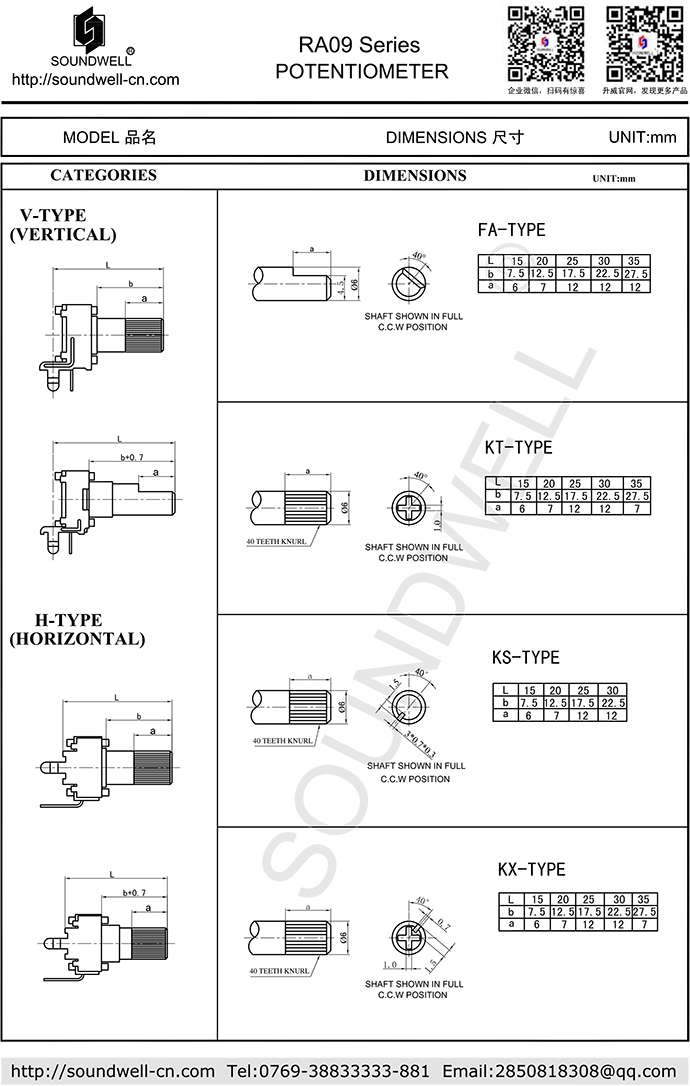 | Main Specifications: | Total resistance error: ±20% Full rotation angle: 280±10°/300±10° Rated power: 0.05W Operating temperature: -10°C~60°C Rotational life: 10,000 cycles Min |