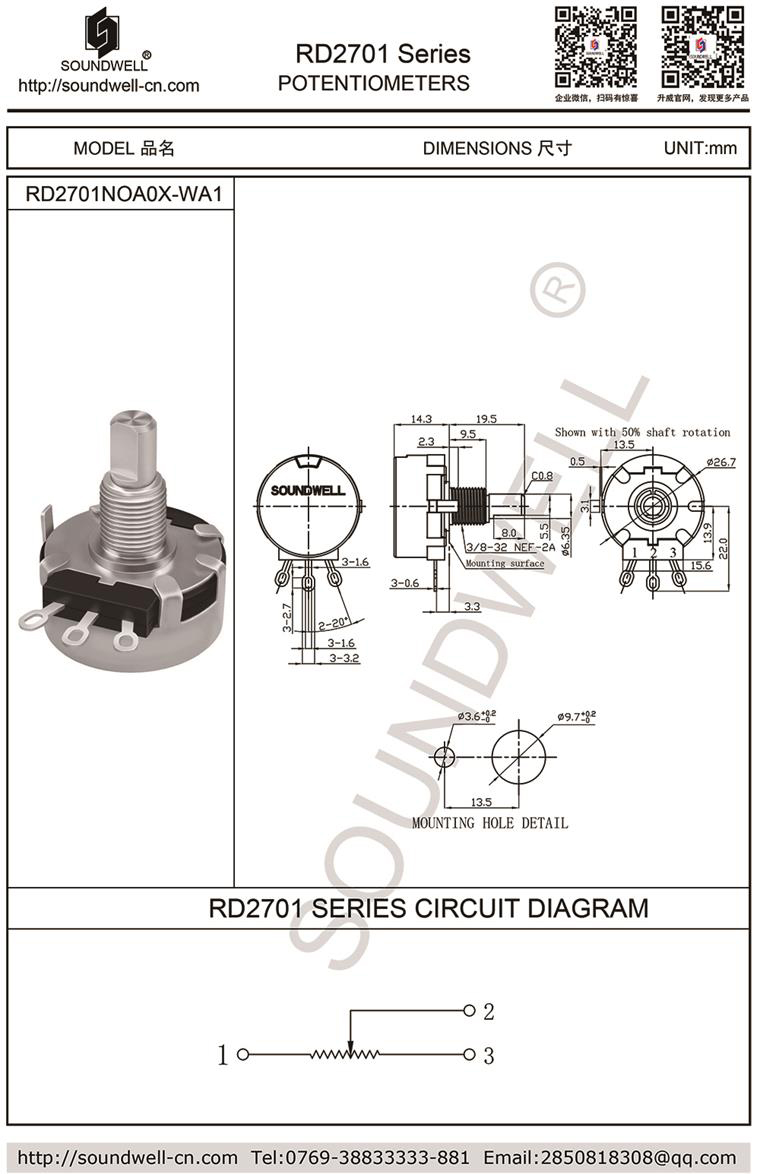 Potentiometer model: RD27 series