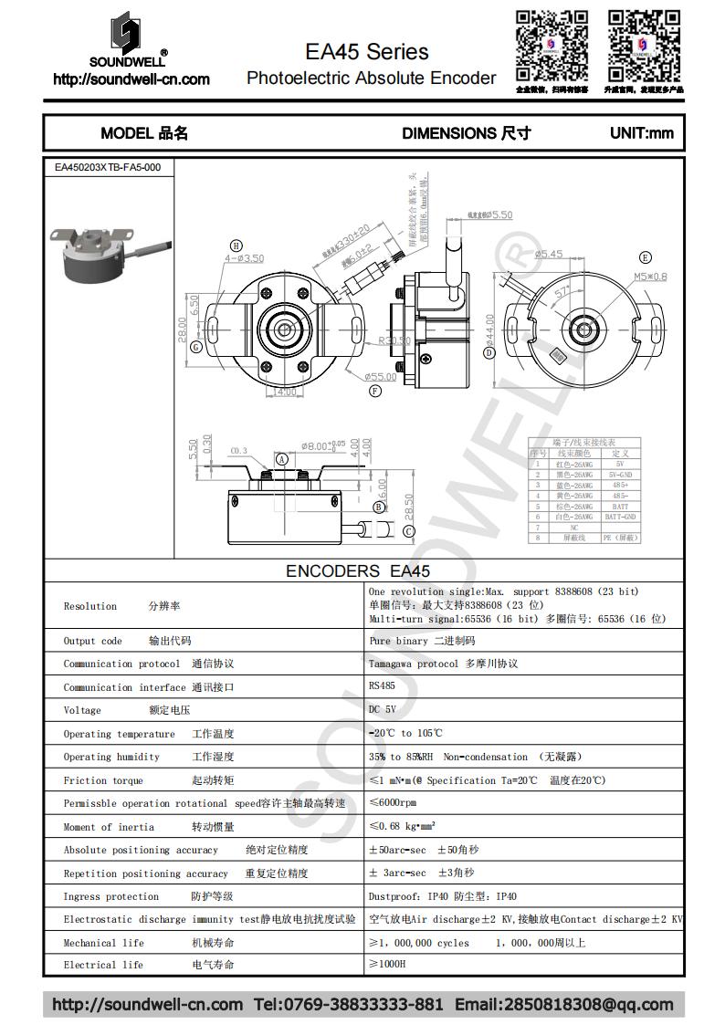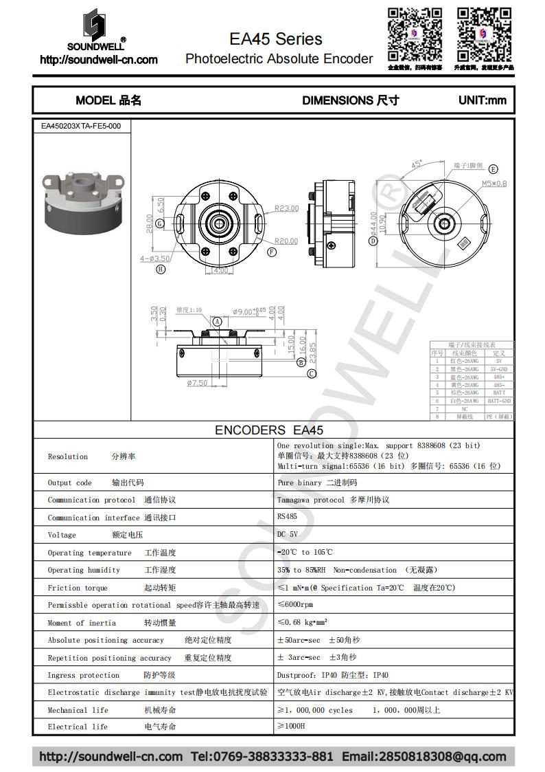 EA45單圈23B、多圈16B中空旋轉(zhuǎn)光電絕對型編碼器
